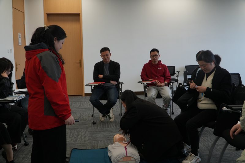“手把手”教學模式下,大家個個爭先恐后,積極投入到各項急救技能的學習中。有人躍躍欲試地學習心肺復蘇(CPR)的正確姿勢與注意要點,有人認真學習著如何快速有效地處理氣道異物梗阻。在笑聲與掌聲中,學習氛圍變得越來越熱烈,仿佛每個人都沉浸在一場急救技能的“洗禮”中。