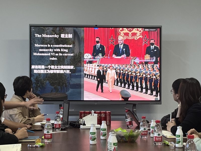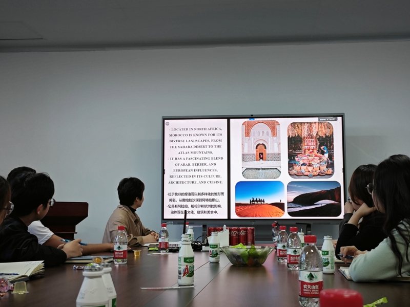 摩洛哥留學生德班給海博生物開展當地風土人情、建筑、文化的分享會,讓大家了解異國風俗,加強與留學生的交流合作。