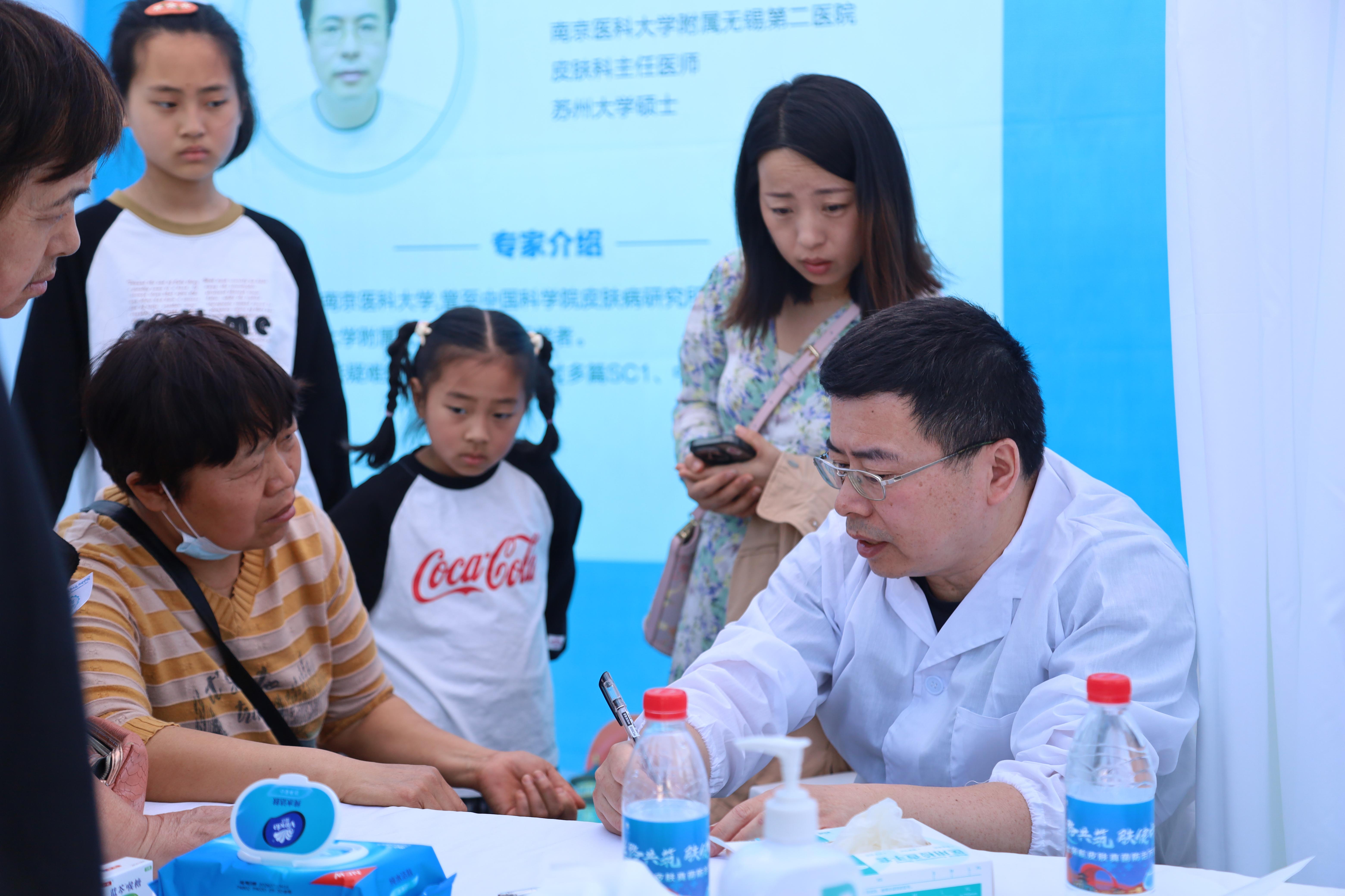 活動現(xiàn)場,10位來自“一帶一路”真菌病國際聯(lián)合實驗室廖萬清院士團隊和省內(nèi)三甲醫(yī)院皮膚科的專家針對民眾關心的銀屑病、濕疹、皮膚淺部真菌病、蕁麻疹等常見皮膚疾病,開展免費檢測、專家問診、健康科普。